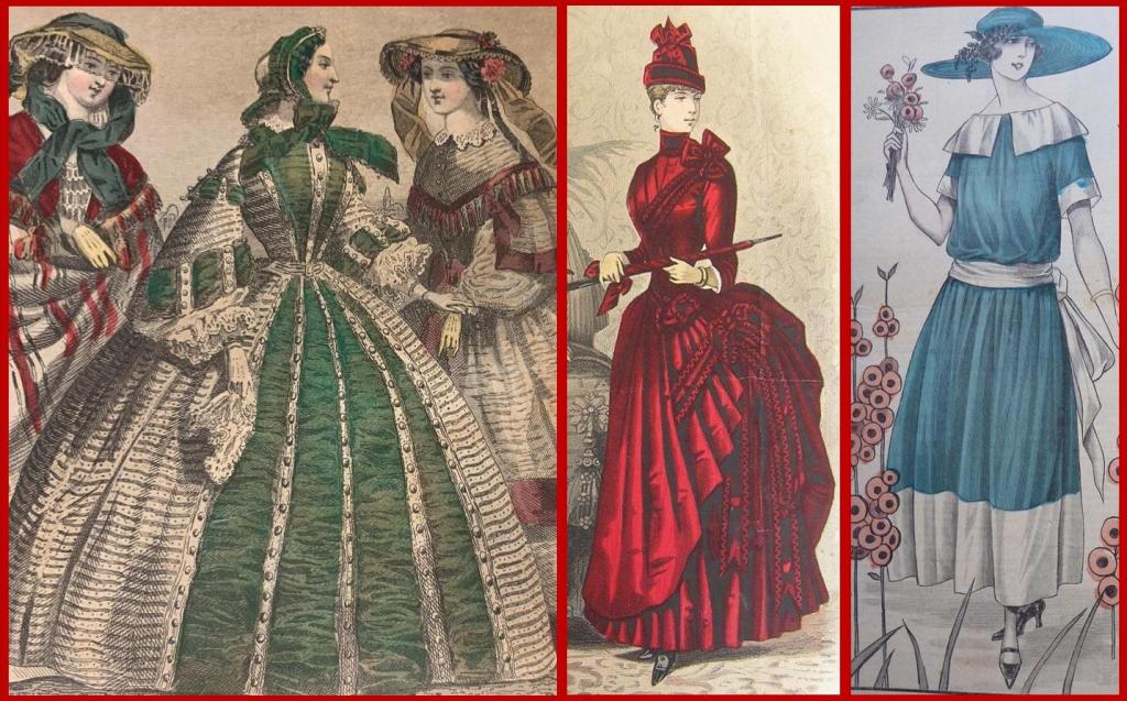 Color: Peterson’s Magazine (USA) reprinting Les Modes Parisiennes (France); Black & White, Demorest’s Family magazine (USA)